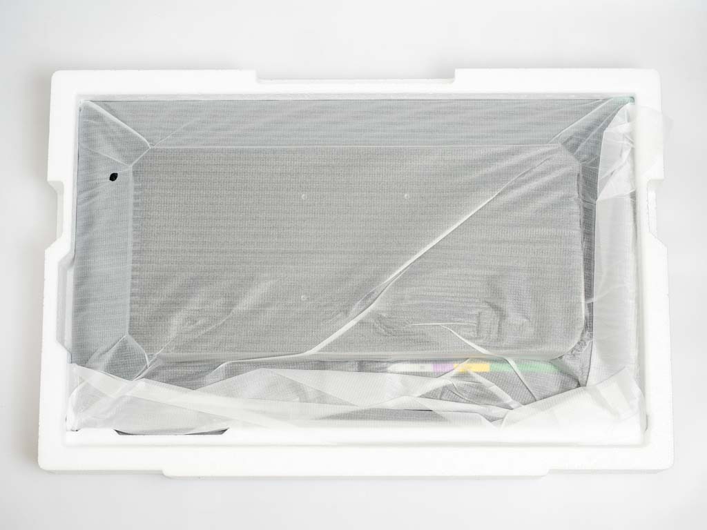 テープを切って箱を開けると保護材の発泡スチロールが見えてきます。